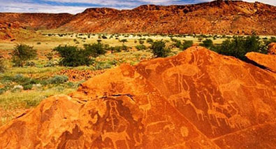 In the rocky landscape lies hidden valuable cultural treasures of Namibia the famous San people rock engravings. There are more than 2,500 rock engravings in Twyfelfontein which are estimated to be at least 2.000 years old.