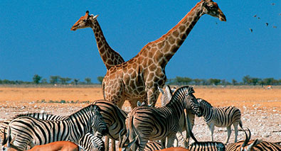 The journey to Etosha National Park is a scenic few hours drive through more of Damaraland’s outstanding beauty. You will arrive at your Etosha accommodation before noon. The remainder of the day can be set aside to begin exploring the national park. You have an option to explore with your vehicle or join a guided game drive in a Game Viewer. You should return to the Resort before sunset. During sunset, make yourself comfortable at one of the park’s waterholes, located nearby your accommodation and see how elephants, giraffes, zebras and antelopes gather for their daily water consumption. This is a real unforgettable experience!